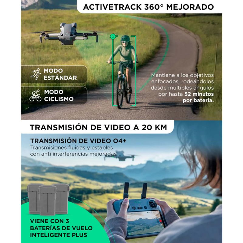 Este combo incluye tres baterías de vuelo inteligente Plus, permitiéndote alcanzar hasta 52 minutos de vuelo por batería. Más oportunidades para crear, explorar y repetir sin interrupciones.