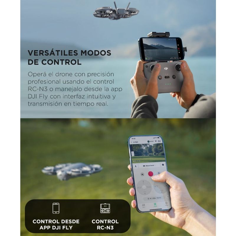 Control versátil: RC-N3 o app DJI Fly: