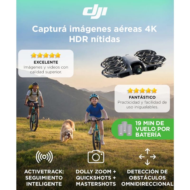 Con menos de 250 g, el DJI Neo 2 es compacto, resistente y fácil de transportar. Incluye tres baterías inteligentes y un hub de carga múltiple que ofrece hasta 54 minutos de vuelo total. Perfecto para creadores, viajeros y profesionales que buscan potencia en un formato portátil.
