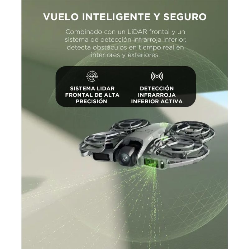 Equipado con sensor LiDAR frontal y detección infrarroja inferior, el Neo 2 analiza su entorno en tiempo real para esquivar obstáculos de forma autónoma. Ideal para interiores, zonas estrechas o entornos con estructuras. Su sistema de visión binocular garantiza precisión milimétrica y máxima seguridad de vuelo.