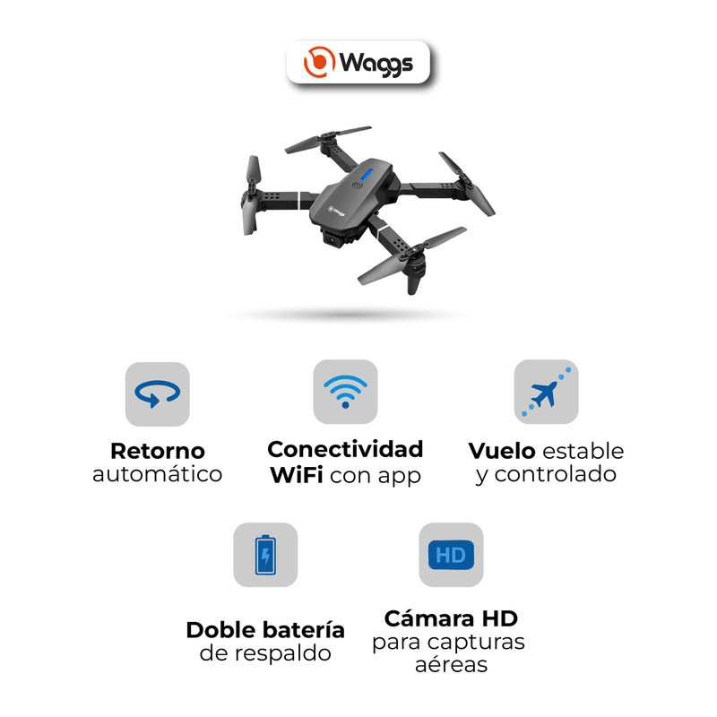 El drone WAGGS DRON01 con cámara HD 720P redefine la experiencia de vuelo al combinar diversión, estabilidad y control preciso en un diseño liviano y aerodinámico. Ideal para principiantes y entusiastas, permite capturar fotos y videos aéreos con buena definición, mientras sus dos baterías recargables extienden la autonomía de vuelo. Incluye modo sin cabeza y retorno automático para mayor seguridad, junto con un control remoto de 2,4 GHz que asegura señal estable y respuesta fluida hasta 120 metros. Fabricado en plástico ABS resistente y de manejo intuitivo, el WAGGS DRON01 ofrece vuelos ágiles, seguros y llenos de creatividad, brindando una experiencia aérea completa y accesible para todos.