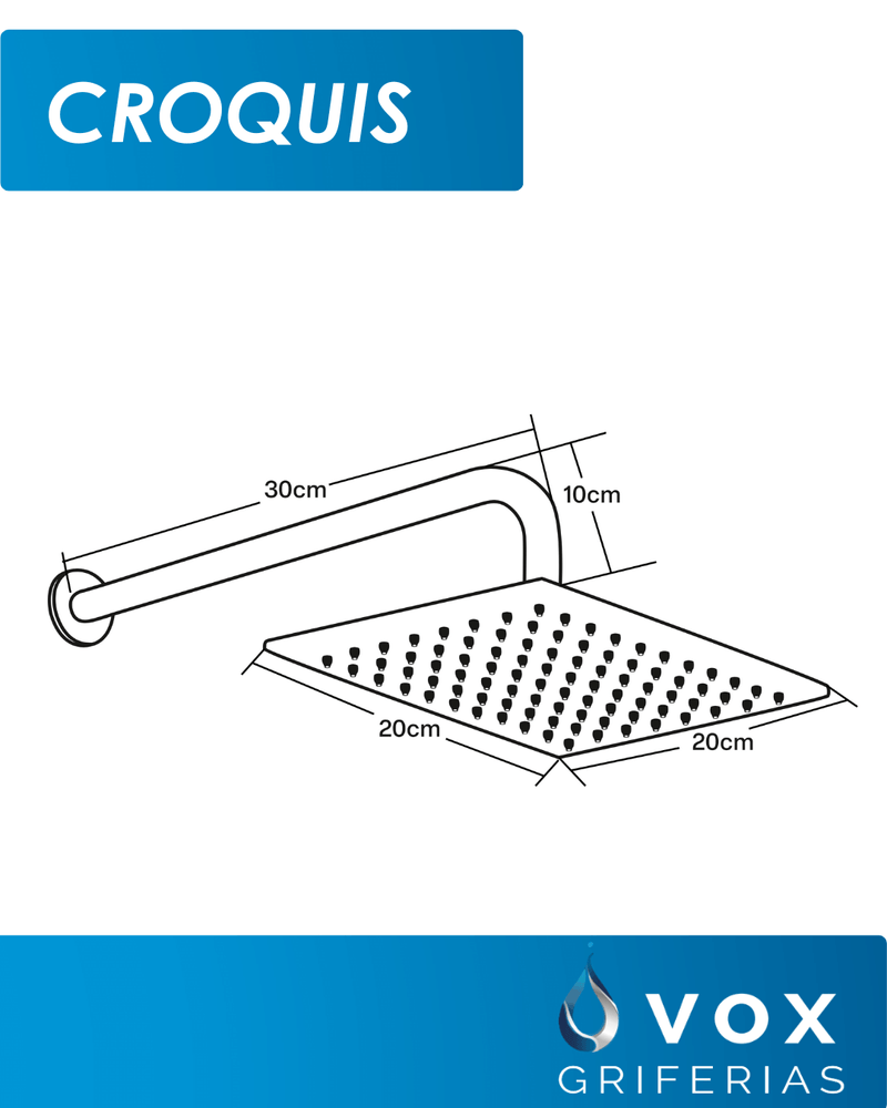 La Ducha Cuadrada de Acero Inoxidable Vox Griferías es la elección perfecta para quienes buscan un diseño moderno y funcional en su baño. Con unas dimensiones de 20x20 cm, su forma cuadrada se adapta a cualquier estilo decorativo, aportando un toque de elegancia y sofisticación.