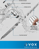 El soporte fijo proporciona estabilidad y comodidad durante el uso, permitiendo disfrutar de una experiencia de ducha placentera. Esta ducha es ideal para quienes valoran la calidad y el diseño en cada detalle de su hogar, convirtiendo el baño en un espacio de relajación y bienestar.