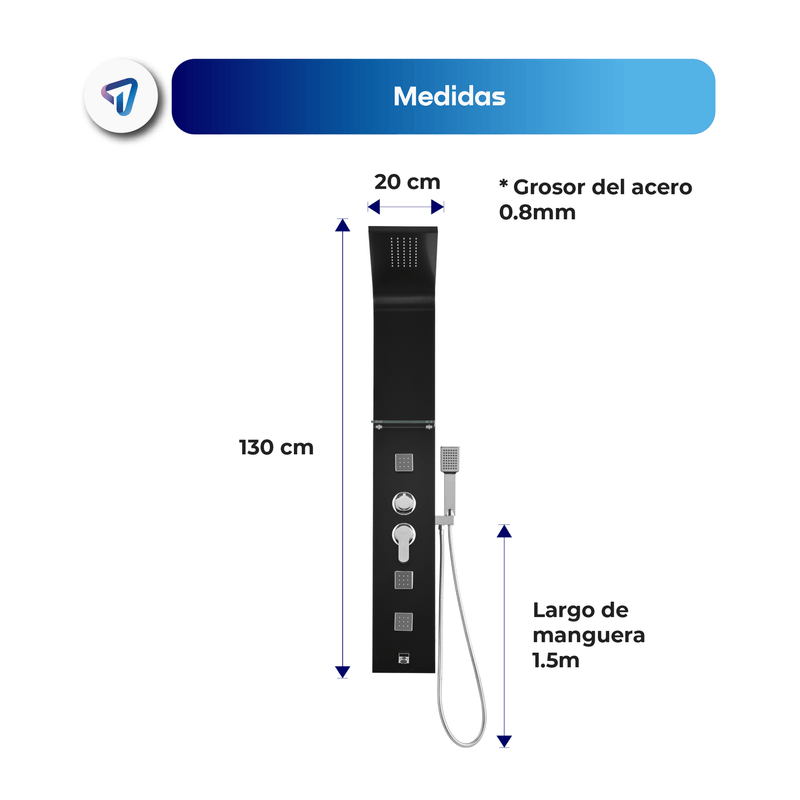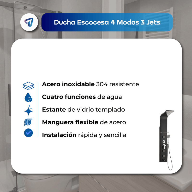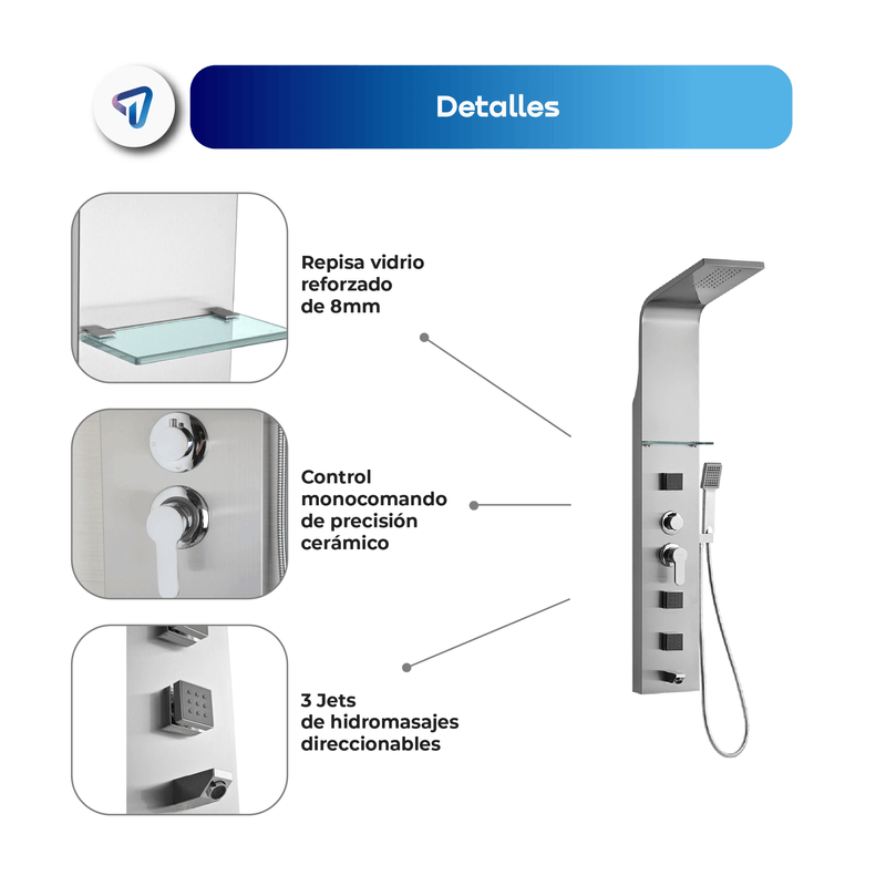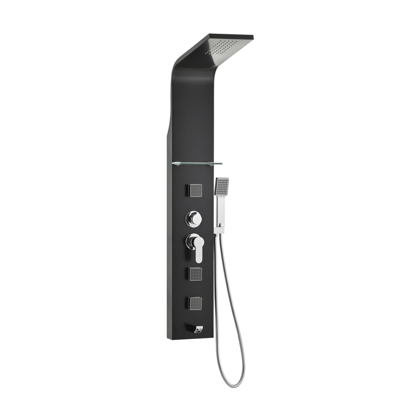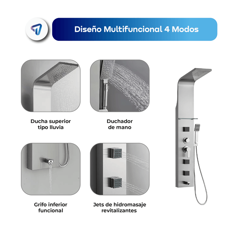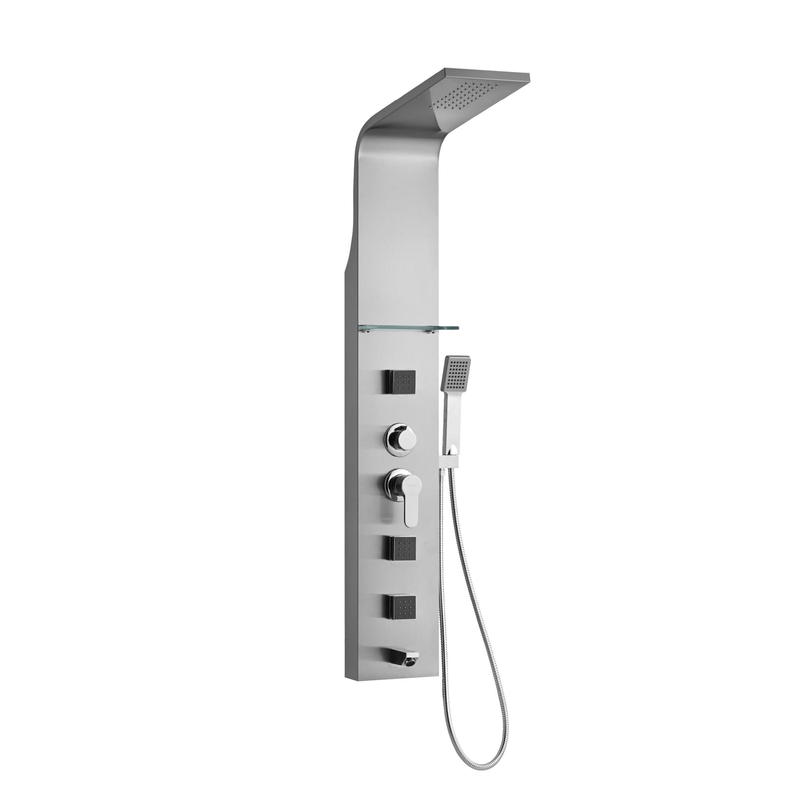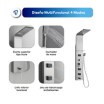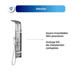 La columna de ducha WAGGS combina diseño elegante y tecnología para ofrecer una experiencia de spa en casa, con cuerpo de acero inoxidable 304 de 0.8 mm, estante de vidrio templado de 8 mm y un sistema multifunción que incluye ducha tipo lluvia, jets de masaje, duchador de mano y caño de llenado de bañera. Mide 130 × 20 cm e incorpora mezclador y selector con manijas de zinc, manguera doble trenzada de 1,5 m y salidas superiores en ABS, asegurando durabilidad, precisión y comodidad. Incluye duchador con soporte, kit de instalación y manual en español, convirtiendo tu baño en un espacio de lujo y bienestar diario.
