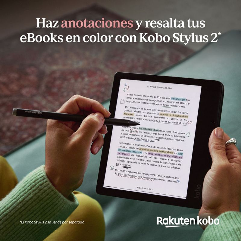 Haz anotaciones y resalta tus eBooks en color con la compatibilidad de Kobo Stylus 2*.