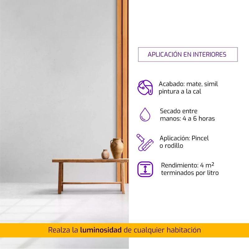 Acabado: Mate, símil pintura a la cal.