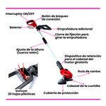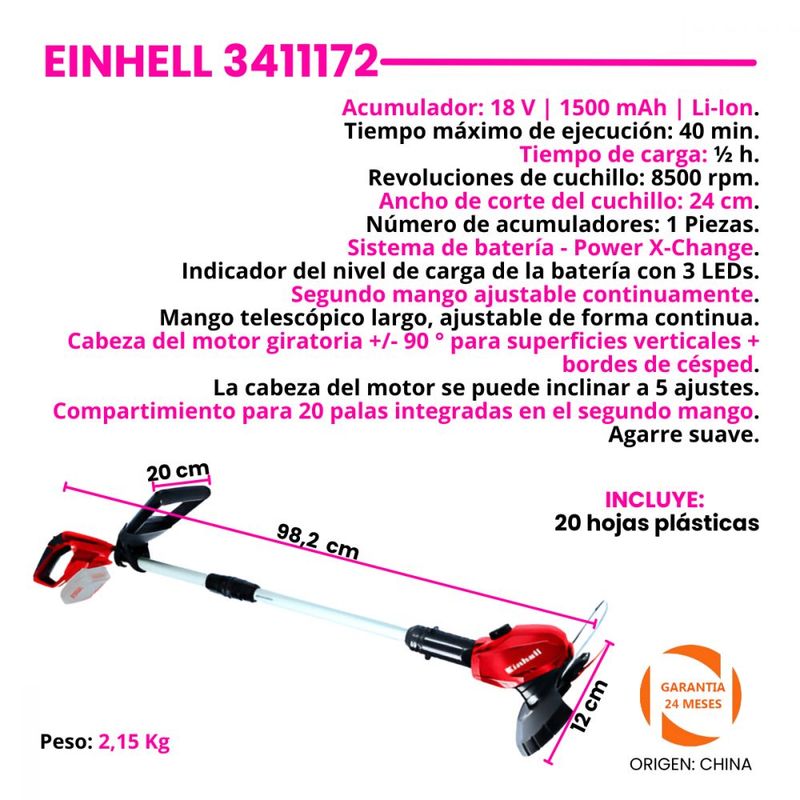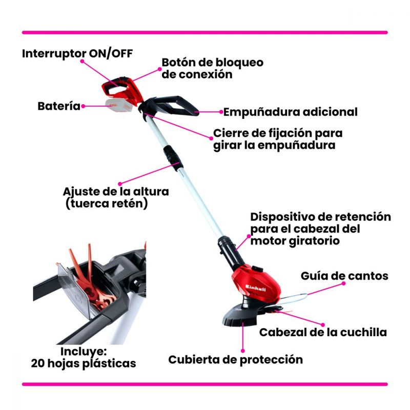 Cabeza del motor giratoria +/- 90 ° para superficies verticales + bordes de césped.