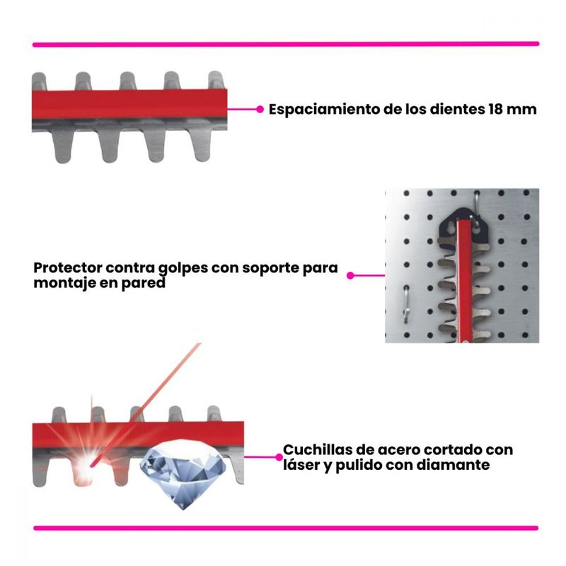 Espaciamiento de los dientes 18mm.