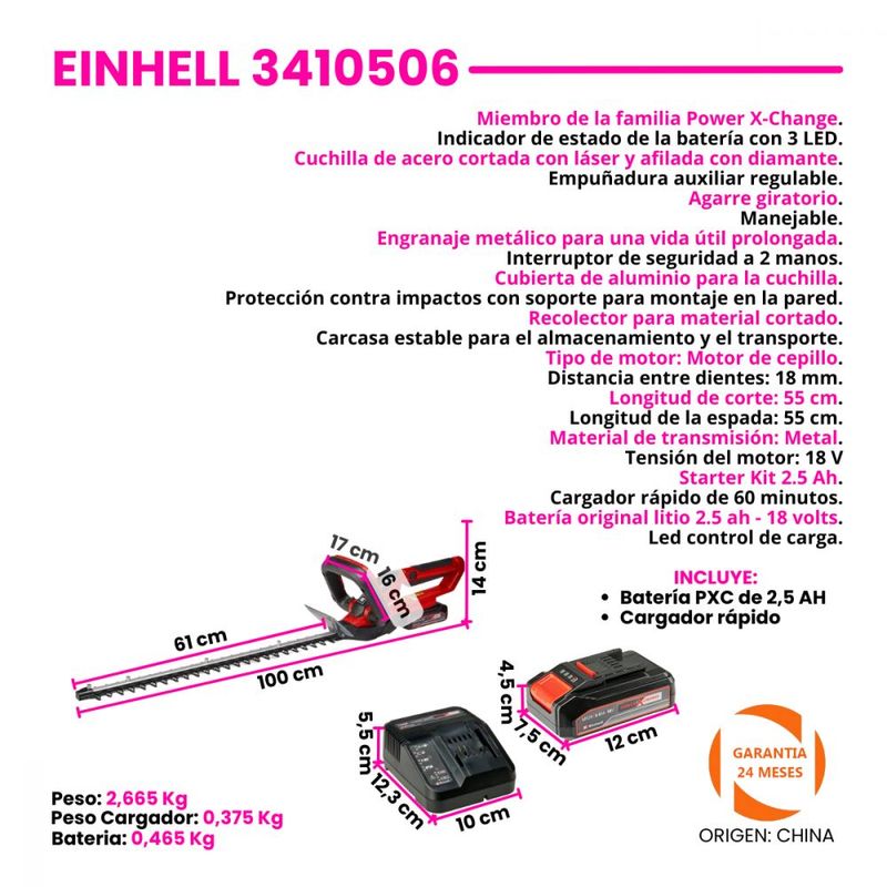 Longitud de corte: 55 cm.