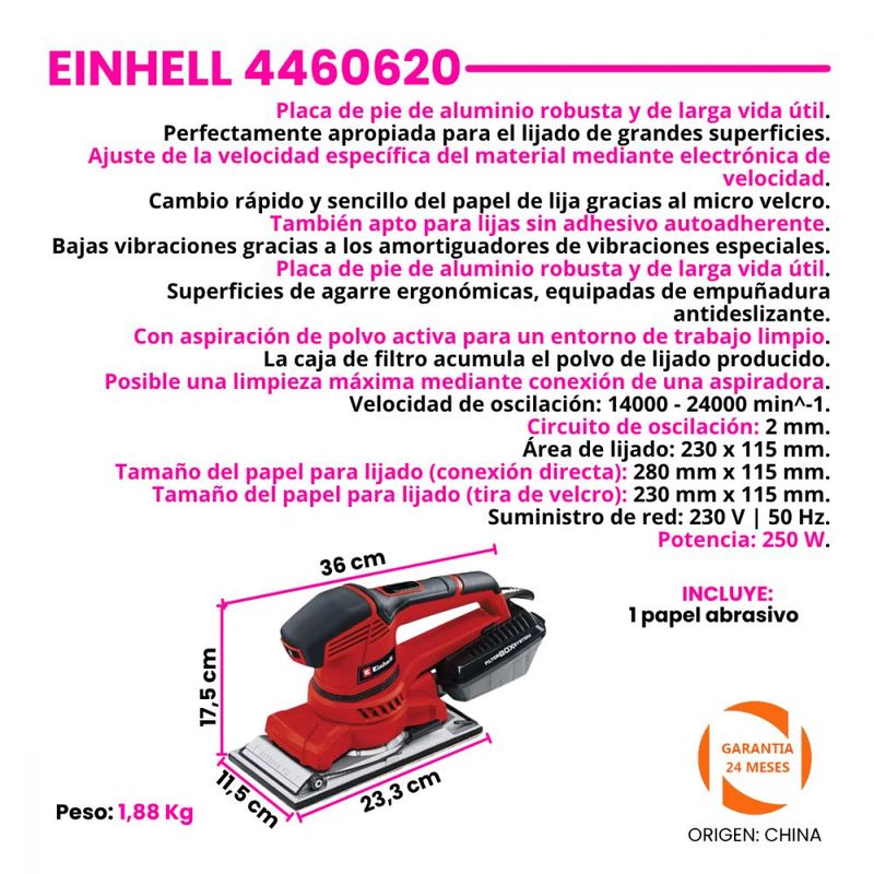 Tamaño del papel para lijado (tira de velcro): 230 mm x 115 mm.