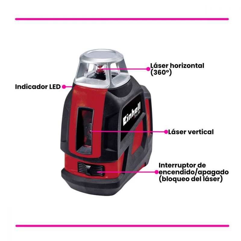 Línea horizontal de 360º para alinear objetos con facilidad.