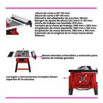 Tamaño de la mesa de trabajo: 580 mm x 555 mm.
