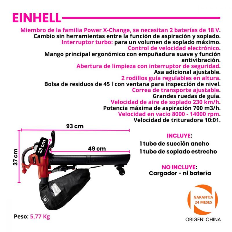 INCLUYE: 1 tubo de succión ancho -1 tubo de soplado estrecho.