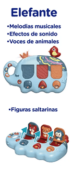 Incluye botones musicales y efectos divertidos que ayudan a desarrollar la coordinación y la motricidad fina.
