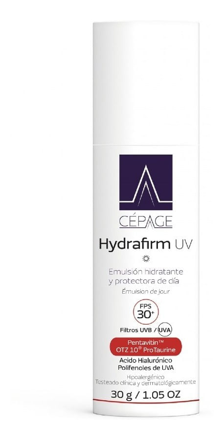 Hydrafirm UV es una emulsión para el rostro, ultra hidratante y preventiva del fotoenvejecimiento cutáneo. Contiene filtros de amplio espectro SPF30, que protegen la piel de los daños producidos por los rayos UVB/UVA. Además, contiene OTZ 10 ProTaurine poderoso antioxidante y protector celular frente a los daños provocados por radicales libres, luz azul e IR. Su textura es fluida y de rápida absorción con un acabado suave.