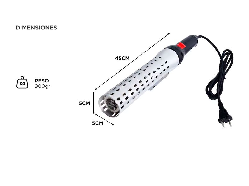 Este encendedor no solo es potente, con una frecuencia de voltaje de 220 V/50 Hz y una potencia de 2000W, sino que también es respetuoso con el medio ambiente, ayudando a reducir la huella de carbono. Con una temperatura máxima de 650°C y un volumen de aire de 500 l/min, proporciona un rendimiento de alta eficiencia.