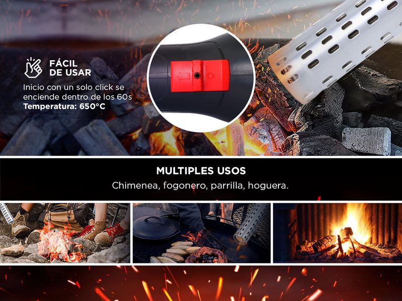 Su diseño ergonómico asegura un manejo cómodo y sencillo, ideal para un uso prolongado. Además, su versatilidad lo convierte en una herramienta esencial para múltiples usos, desde encender barbacoas, chimeneas y más.