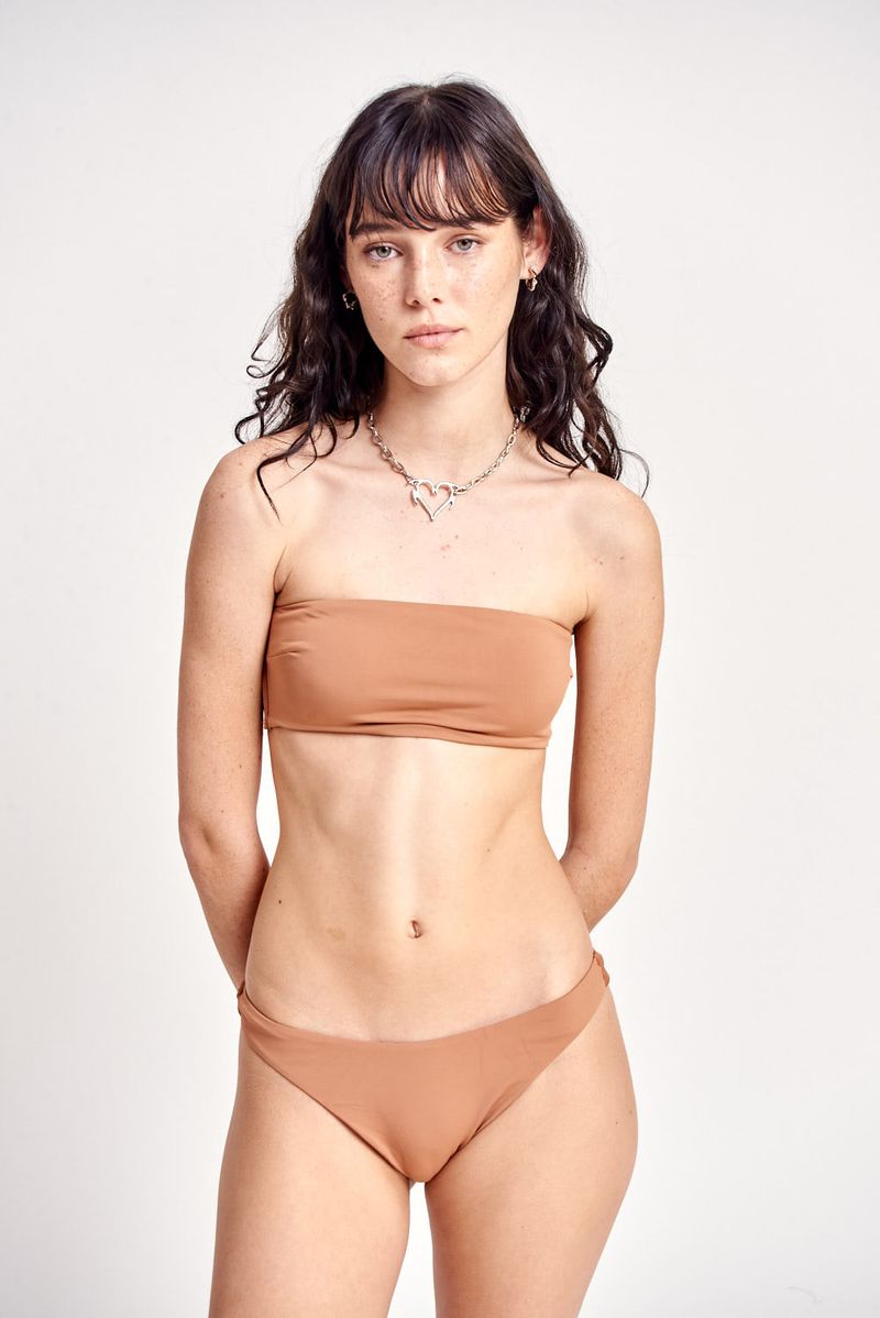 Bikini entera de tres piezas compuesta por un bandoo y vedetina, y una tercer pieza entera de un hombro. Tiene doble funcionalidad. Super comoda y canchera