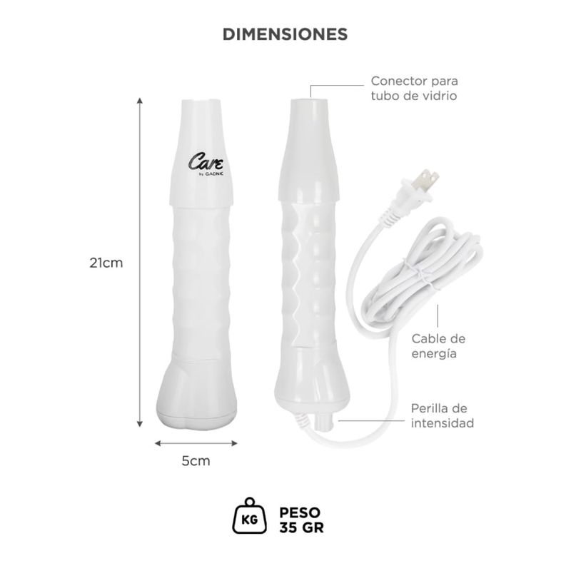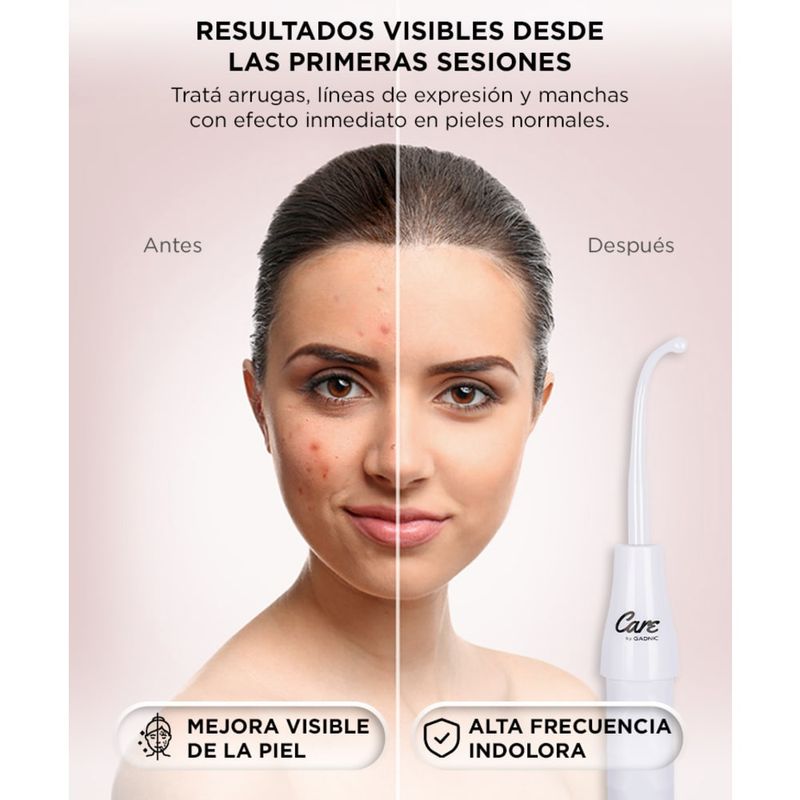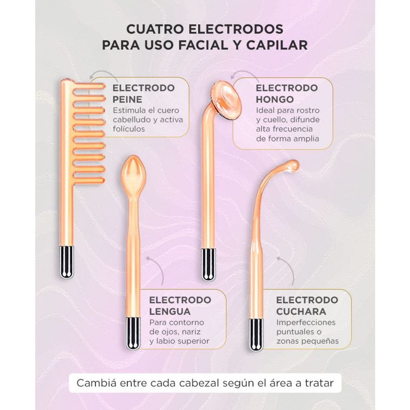 Las acciones de la corriente de alta frecuencia sobre el cuerpo humano, empleando electrodos de cristal llenos de gas, consisten, en primer lugar, en un enrojecimiento más o menos intenso, señal de aumento de la afluencia de sangre en la piel y los tejidos, seguido de aumento de calor, ello tiene por consecuencia el enriquecimiento del tejido en oxígeno, a causa de la mayor nutrición, seguida de un aumento de los intercambios intracelulares.