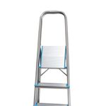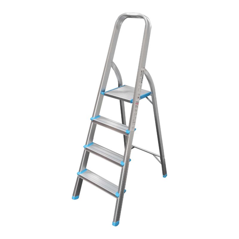 Escalera de aluminio reforzada con 4 escalones. Cómoda de guardar y trasladar. Ideal para el mantenimiento del hogar.