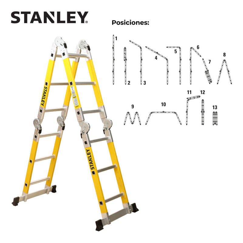 Escalera Articulada Dieléctrica de Fibra Stanley 12 Escalones 4 x 3 150 kilos