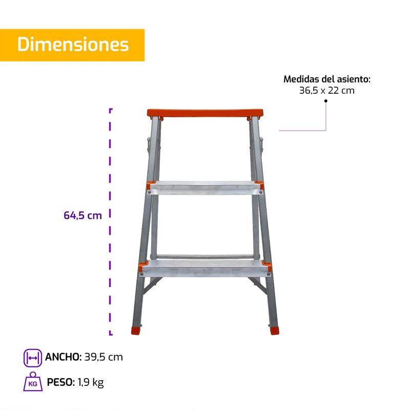 Escalera Banco Aluminio 3 Escalones Botafogo Hasta 120Kg