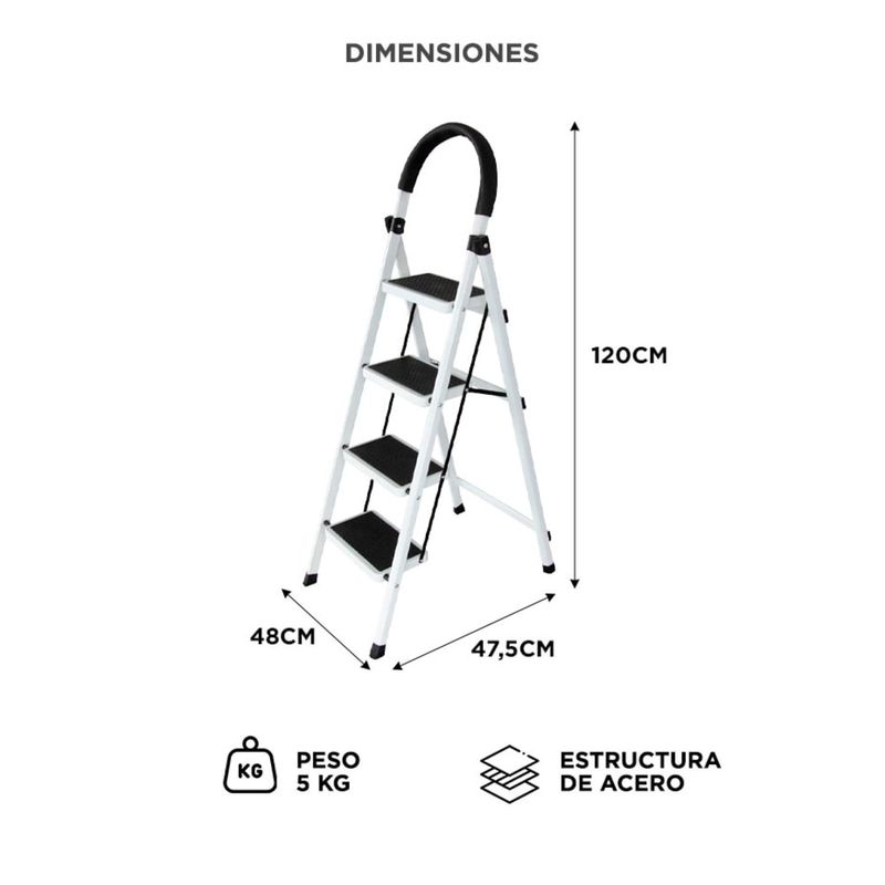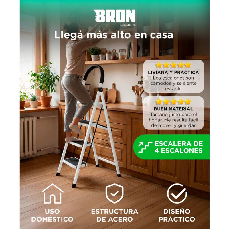 La escalera Bron by Gadnic de 4 escalones permite alcanzar estantes, alacenas y zonas altas de forma cómoda en el hogar.
