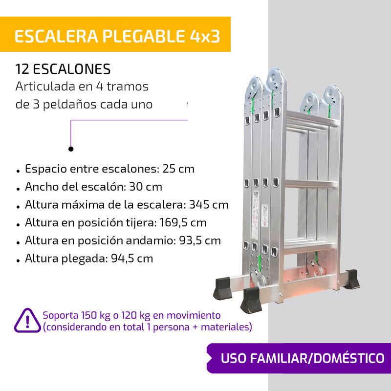 Escalera De Aluminio Articulada 4x3 Multifunción Hasta 150kg