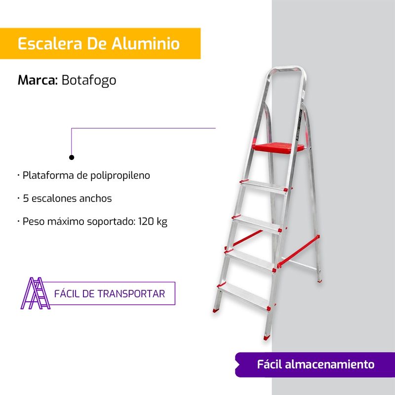 Escalera Doméstica Aluminio Tijera 5 Escalones Hasta 120kg Botafogo