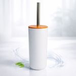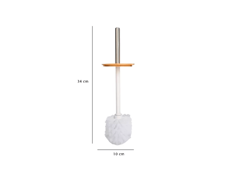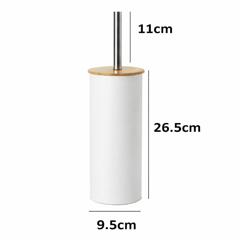 HOGAR ACTUAL ESCOBILLA P/BAÑO DE ACERO BLANCO C/TAPA BAMBOO SKU: 142762-B
