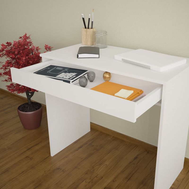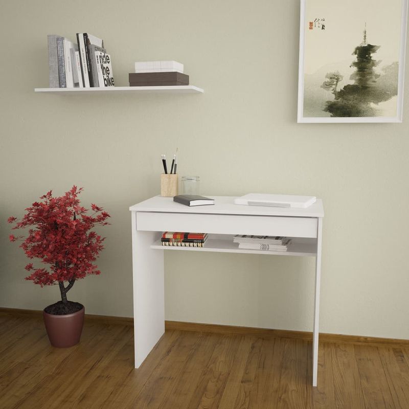 Escritorio de melamina de un tamaño ideal para ubicarlo en cualquier rincón de la casa.