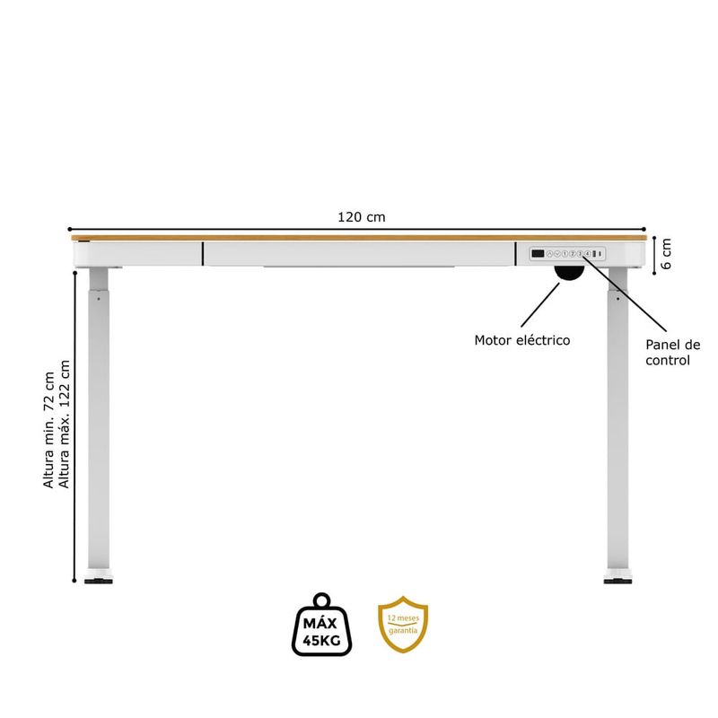 Medida del tablero: 120 cm de largo × 60 cm de profundidad