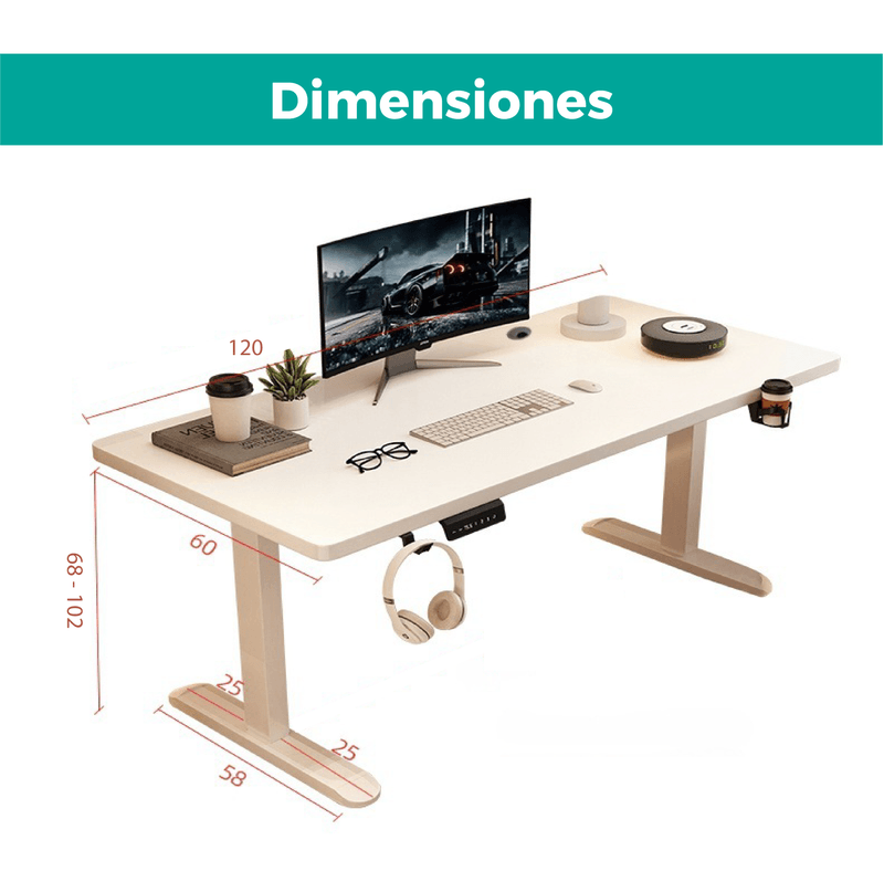 TRABAJÁ SENTADO O DE PIE: Suave y silencioso motor eléctrico que te permite ajustar la altura de la mesa de 68 a 102 cm en segundos. ¡Adaptalo a tu necesidad!<br>