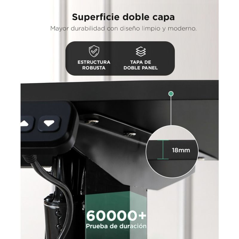 Adaptá la posición de trabajo a tu altura con solo tocar un botón. Ideal para jornadas largas.