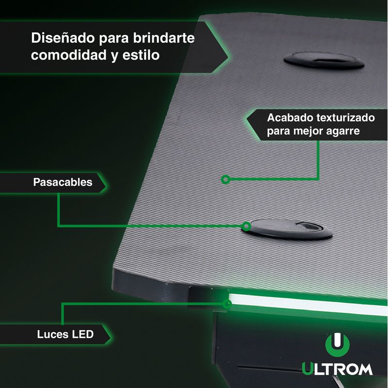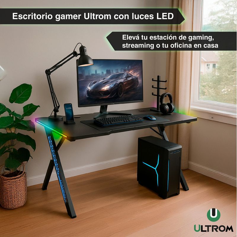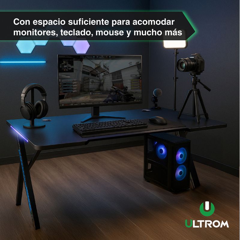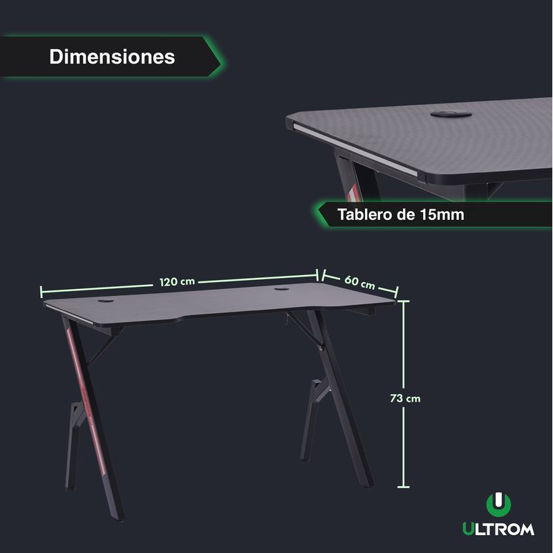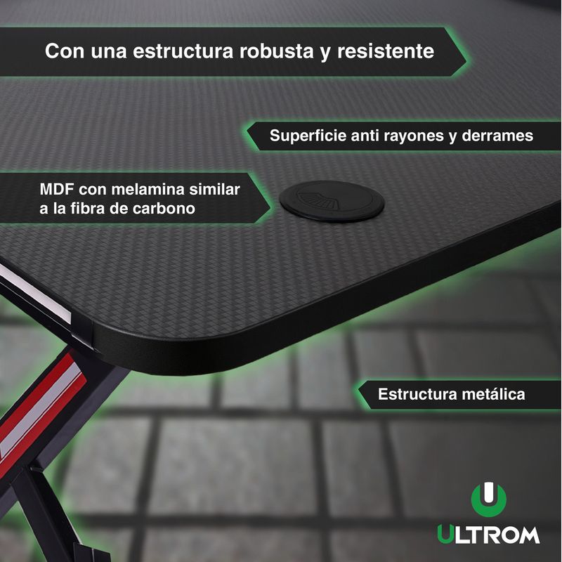 Escritorio Gamer Con RGB Ultrom GT-2309 Fibra de Carbono 120x60x73Cm