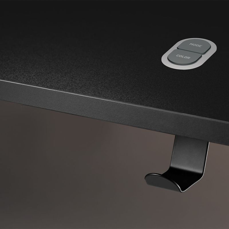Con diseño minimalista integra el control de iluminación directamente en la superficie para un setup limpio y organizado. Su capacidad de carga de 75kg, ofrece estabilidad incluso en las sesiones de juego mas intensas.