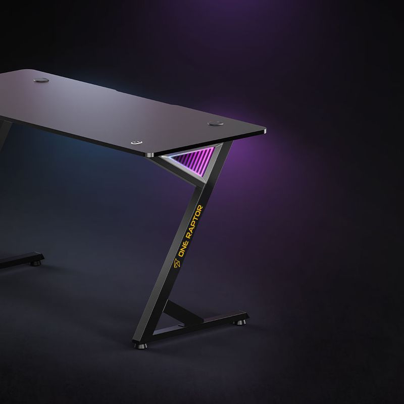 Iluminá tus setup gamer con estilo con el nuevo escritorio ZETA de ONE RAPTOR. Este escritorio de última generación destaca por su diseño futurista y su efecto de espejo infinito en las patas.