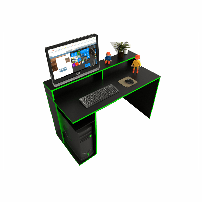 Este escritorio Gamer es para vos! Con su diseño moderno y funcional, te permitirá disfrutar al máximo de tus partidas. El escritorio gamer con alzada te ofrece un espacio amplio y cómodo para que puedas jugar con la mayor comodidad. Además, cuenta con un estante para la CPU.