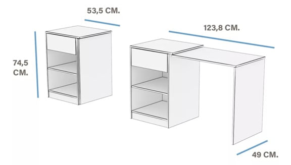 Con medidas de 123,8 × 49 × 74,5 cm, ofrece una superficie amplia para estudiar o trabajar sin ocupar de más. Incluye un cajón con correderas de acero para guardar lo esencial y un estante que suma organización. Fabricado en melamina resistente, es fácil de limpiar y pensado para el uso diario. Además, se pliega cuando no lo necesitás y viene con kit de instalación y manual.