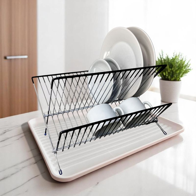 Cuenta con una bandeja inferior recolectora que evita el goteo sobre la encimera, manteniendo tu cocina siempre limpia y ordenada. Ideal para platos, vasos y utensilios, su diseño compacto es perfecto para cocinas de cualquier tamaño.