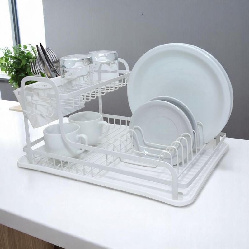 HOGAR ACTUAL ESCURREPL. DE ACERO DOBLE PINTADO DE BLANCO (50*31,5*16cm)