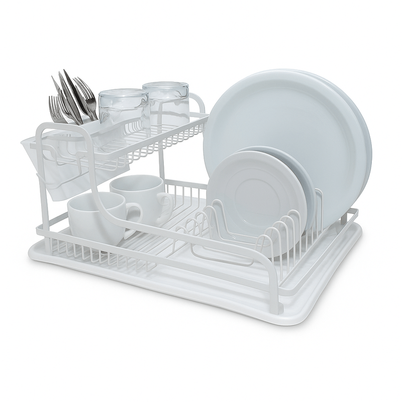 El escurreplatos de acero doble pintado color blanco de Hogar Actual es una solución elegante y funcional para organizar y secar tus platos. Con unas medidas de 50 x 31,5 x 16 cm, este diseño compacto y moderno se adapta perfectamente a cualquier cocina. Su estructura de acero garantiza durabilidad, mientras que el acabado blanco aporta un toque limpio y sofisticado. Ideal para mantener el orden y facilitar las tareas diarias.