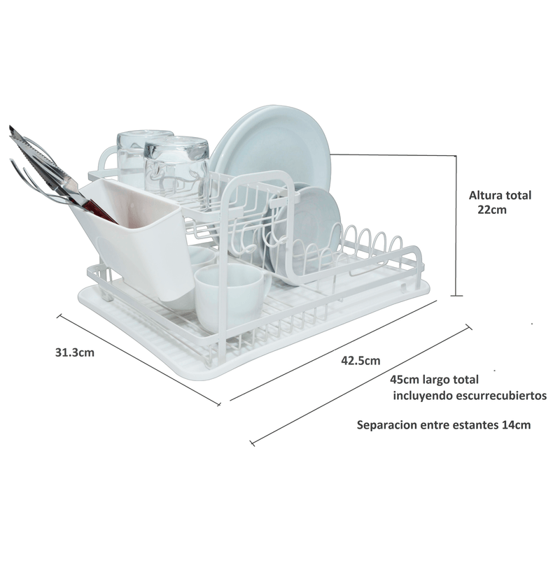 Medidas Escurreplatos: Ancho 31.3 cm Alto 20.7 cm Largo 45 cm incluyendo cubiertero.