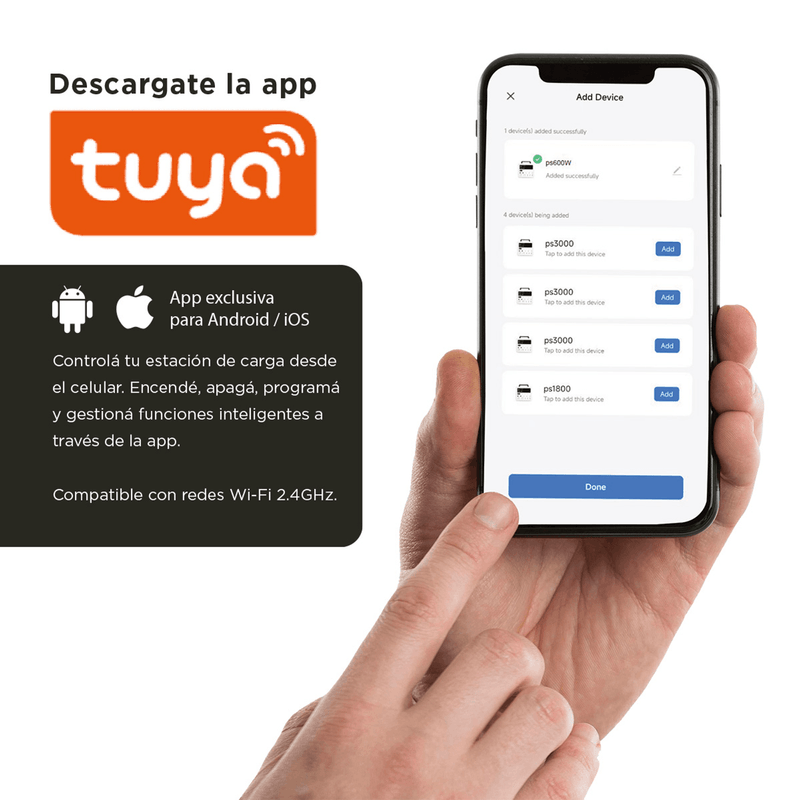 - Podés cargar varios dispositivos simultáneamente con sus múltiples salidas, incluyendo USB-C de alta potencia para notebooks y smartphones.