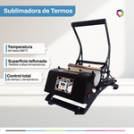 Está diseñada para que sea sencillo colocar y quitar los productos a sublimar y que a su vez sea sencillo intercambiar los accesorios y resistencias para que puedas sublimar tazas y termos, y cualquier superficie cilíndrica sublimable.