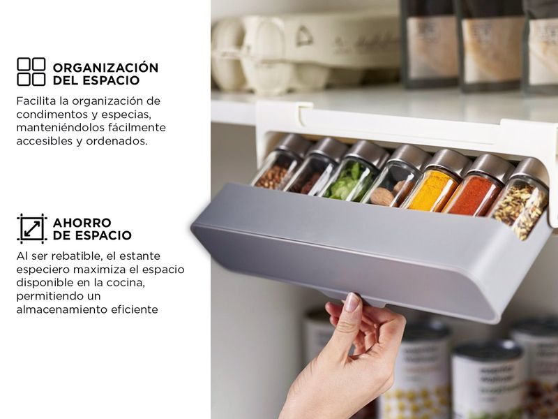 Optimiza tu cocina y maximiza el espacio de almacenamiento con nuestro Estante Especiero Condimentero Organizador Cocina Rebatible.