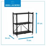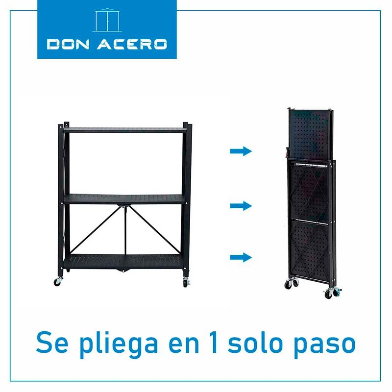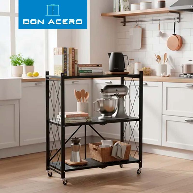 Don Acero presenta una estantería plegable de 3 niveles, práctica, moderna y funcional, diseñada para optimizar tus espacios y mantener todo en orden de manera sencilla.