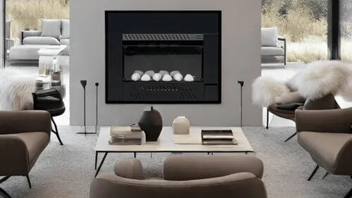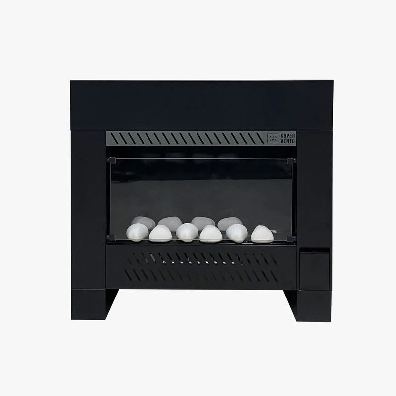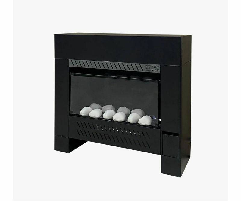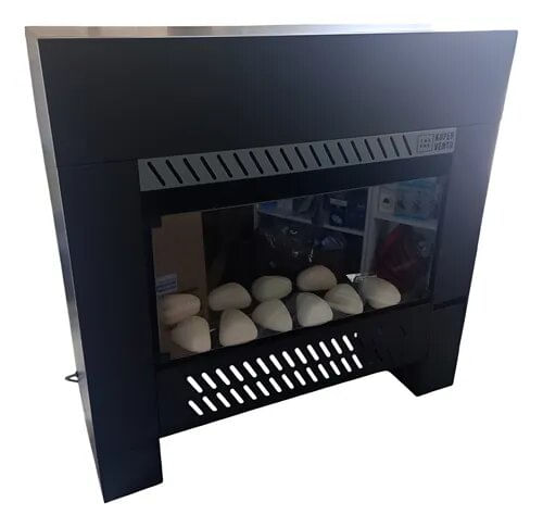 Hogar con quemador a gas de acero inoxidable 6000 calorías + forzador de aire tangencial que transforma el aire frío en brisas de aire cálido.