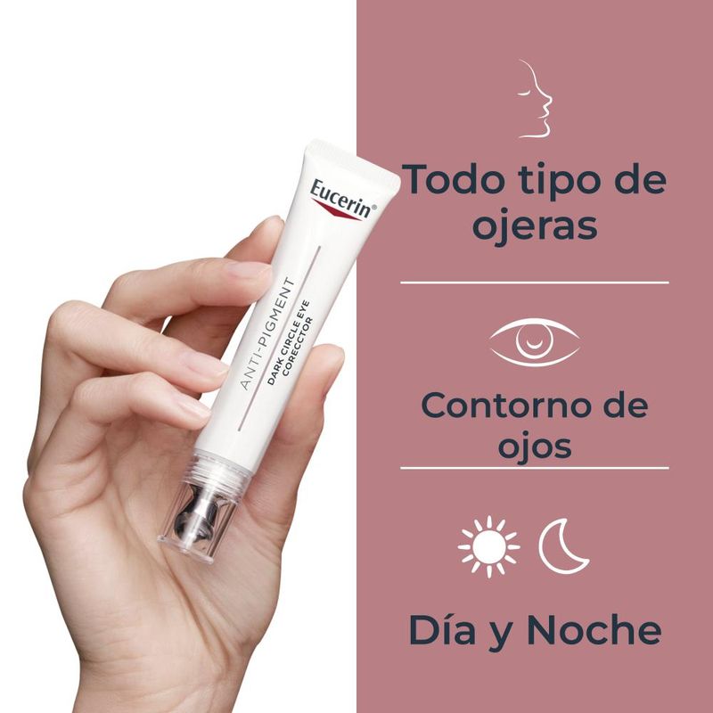Eucerin Anti-Pigment Crema Anti-Ojeras combina potentes ingredientes activos que actúan de diferentes maneras para potenciar la luminosidad de la piel y reducir la hiperpigmentación, además de iluminar y suavizar el contorno de los ojos desde su origen.