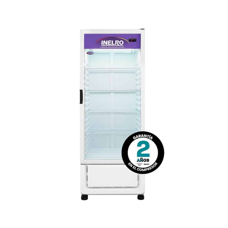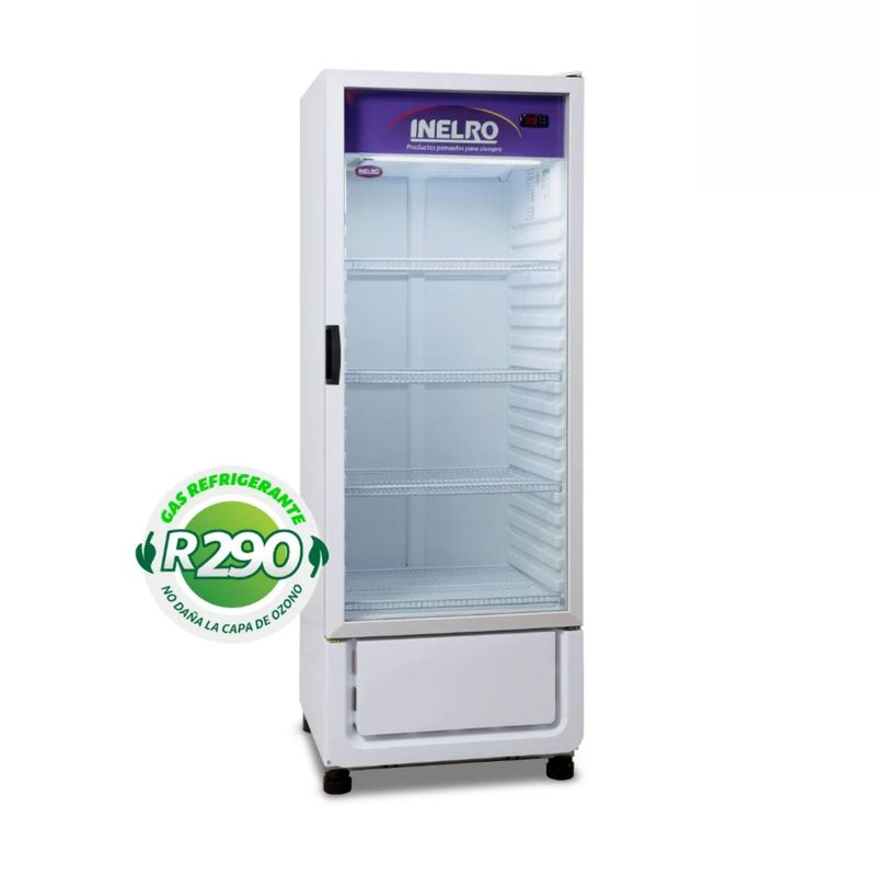 Exhibidora Vertical – Sin Cenefa, Condensación Estática, Cuatros Estantes Móviles, Tolva Inyectada, Nuevo Zócalo Inyectado. Capacidad: 370 lts Controlador Digital de Temperatura = Menor Consumo Mayor Aislación = Menor Consumo Mejor Desempeño Frigorífico Resorte en puerta, garantiza el cierre = Menor Consumo